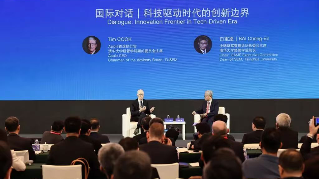 2025年10月18日,全球财富管理论坛·2025上海苏河湾大会在上海展览中心拉开帷幕。在”国际对话“环节,苹果公司首席执行官、清华大学经济管理学院顾问委员会主席蒂姆·库克(Tim Cook)与全球财富管理论坛执委会主席、清华大学文科资深教授、清华大学经济管理学院院长、清华大学全球共同发展研究院执行院长白重恩展开对话,围绕人工智能、技术变革等话题进行深度交流。苹果公司首席执行官、清华经管学院顾问委员会主席蒂姆·库克与...